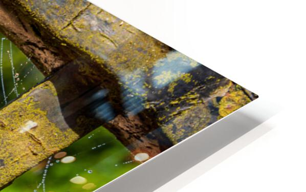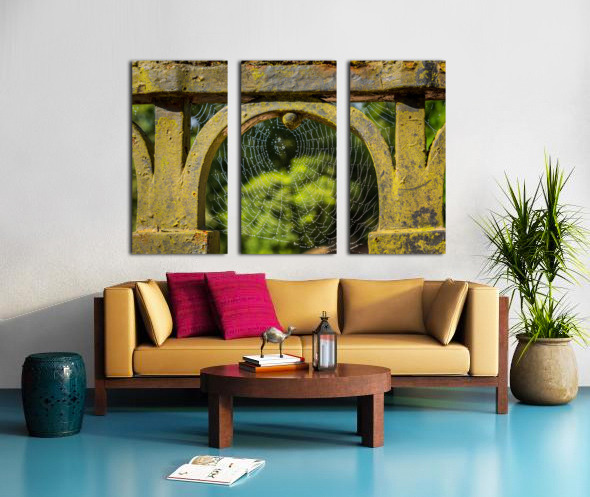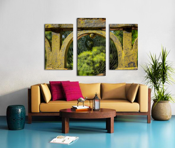 Dew glistening cobweb on gate Impression sur toile