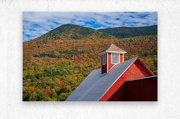 Roof of Grandview farm barn near Stowe in Vermont during the autumn color season