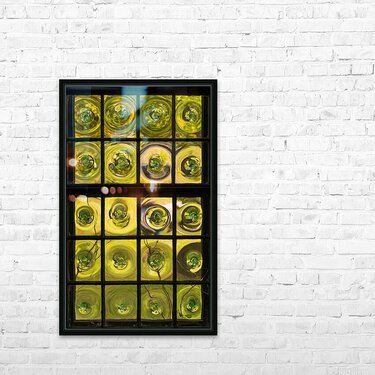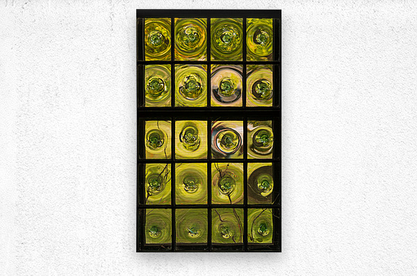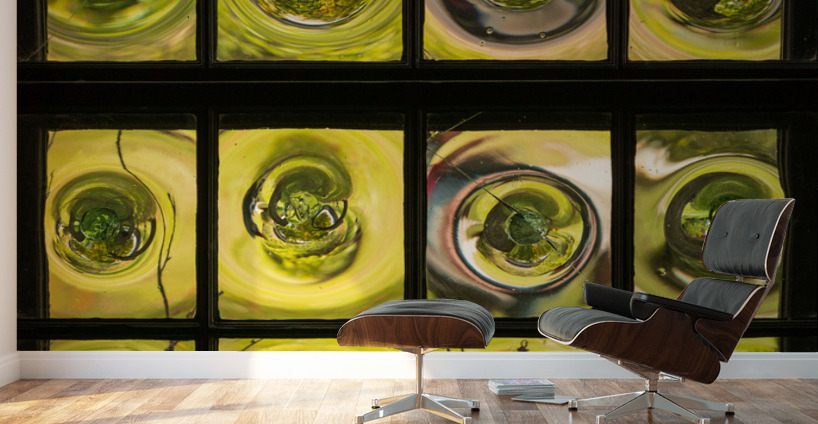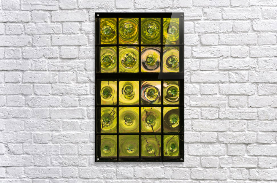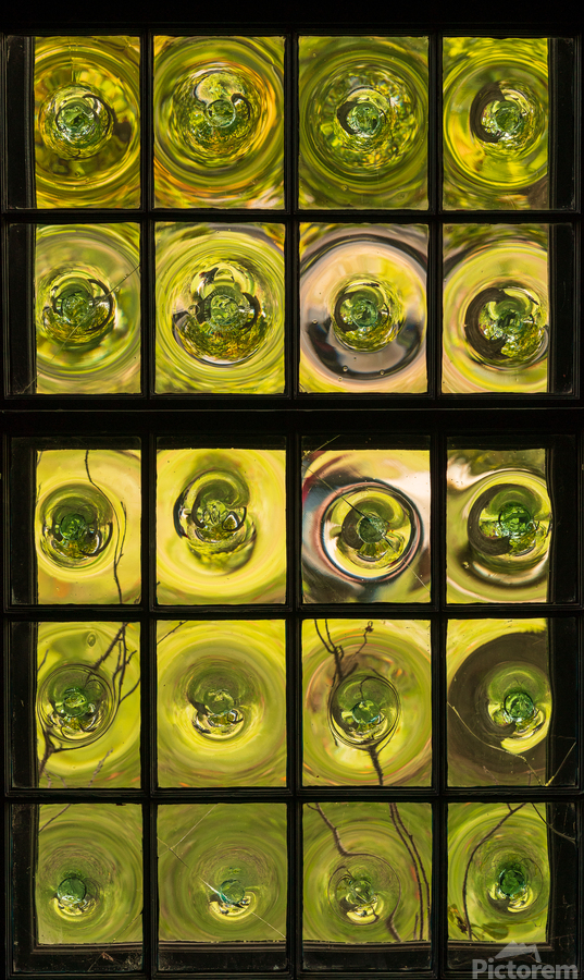 SUR CETTE OEUVRE: WINDOW OF OLD CROWN GLASS PANES REFLECTED GARDEN