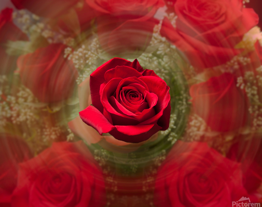 SUR CETTE OEUVRE: CLOSE UP OF RED ROSE BOUQUET WITH ROSES