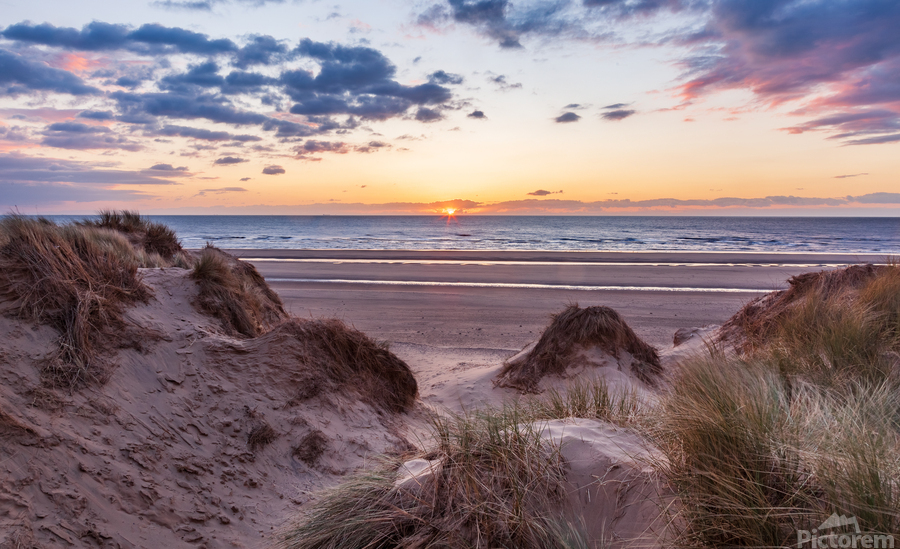 SUR CETTE OEUVRE: SUNSET OVER FORMBY BEACH THROUGH DUNES