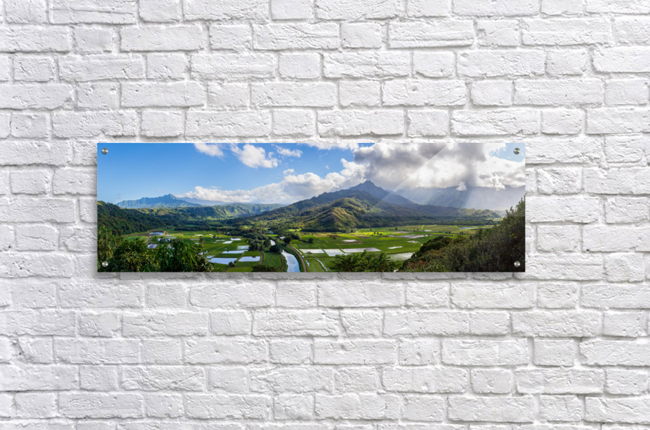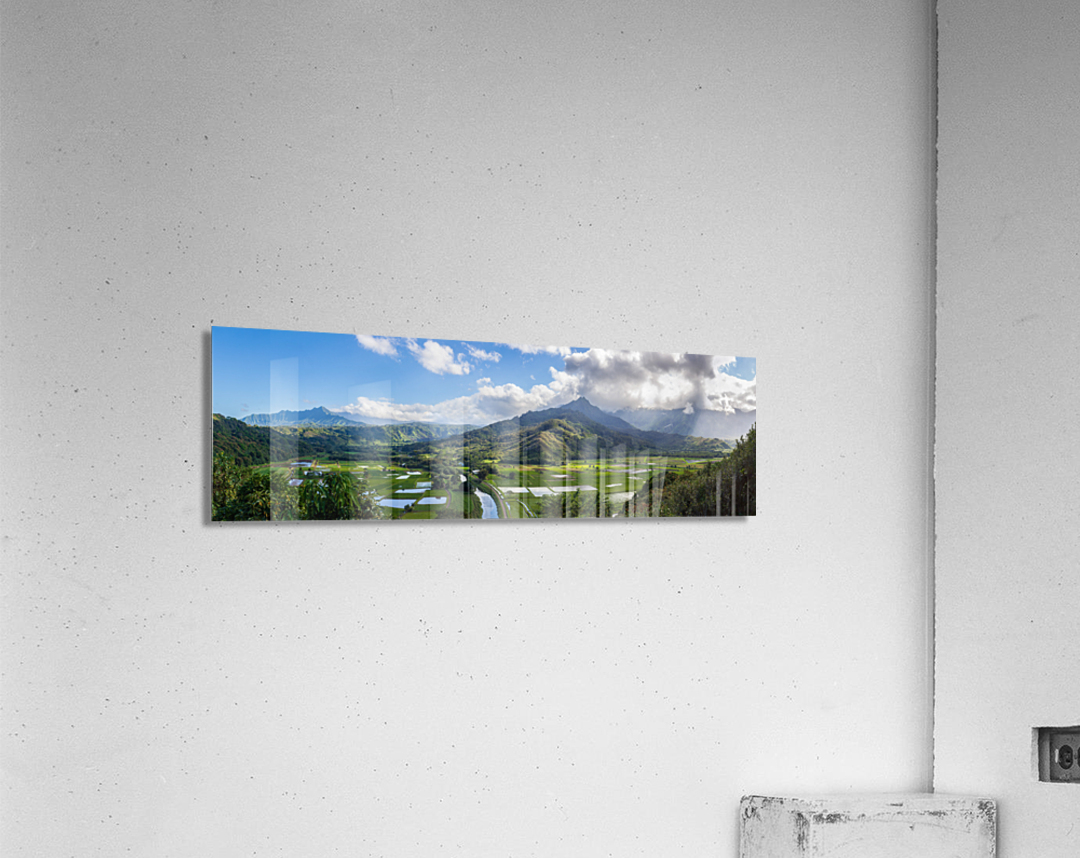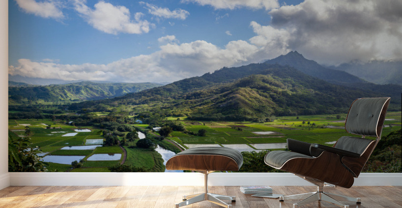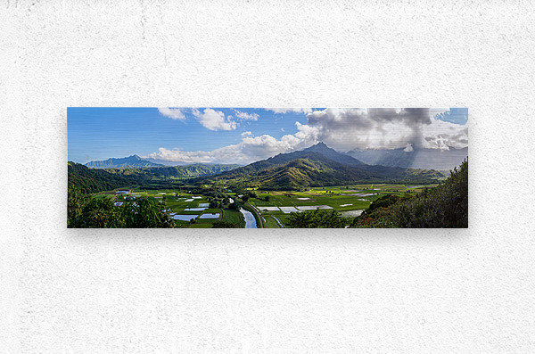 Panoramic view of the taro fields in the Hanalei valley from Princeville overlook in Kauai in Hawaiian islands in high resolution