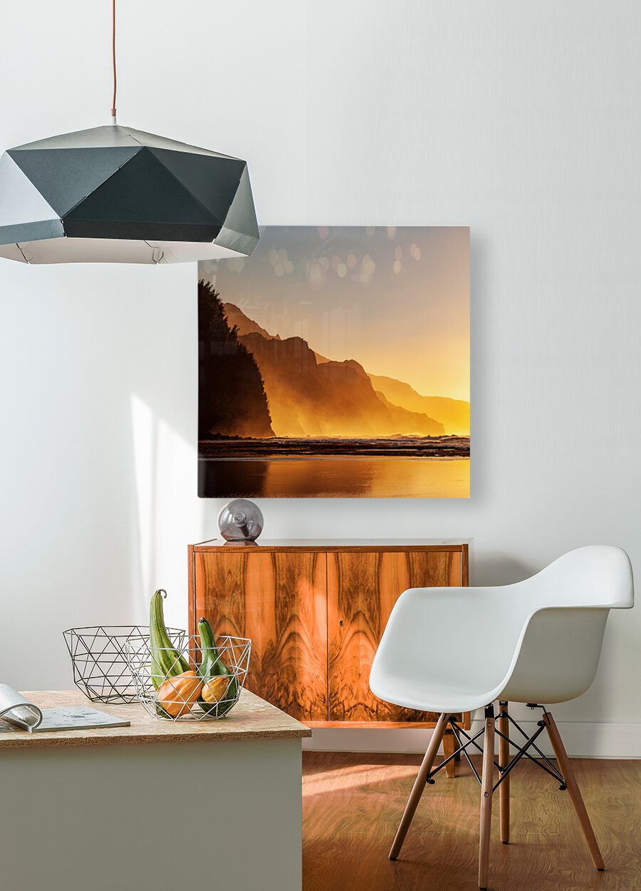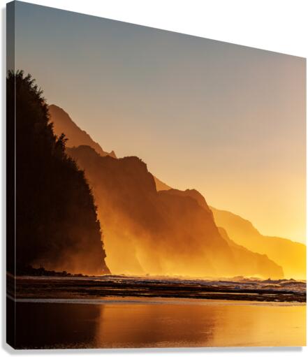 SUR CETTE OEUVRE: MISTY SUNSET ON NA PALI COASTLINE