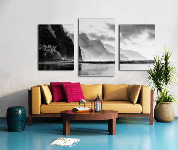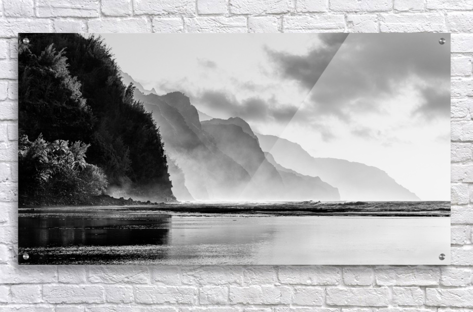 SUR CETTE OEUVRE: BLACK AND WHITE SUNSET ON NA PALI COASTLINE
