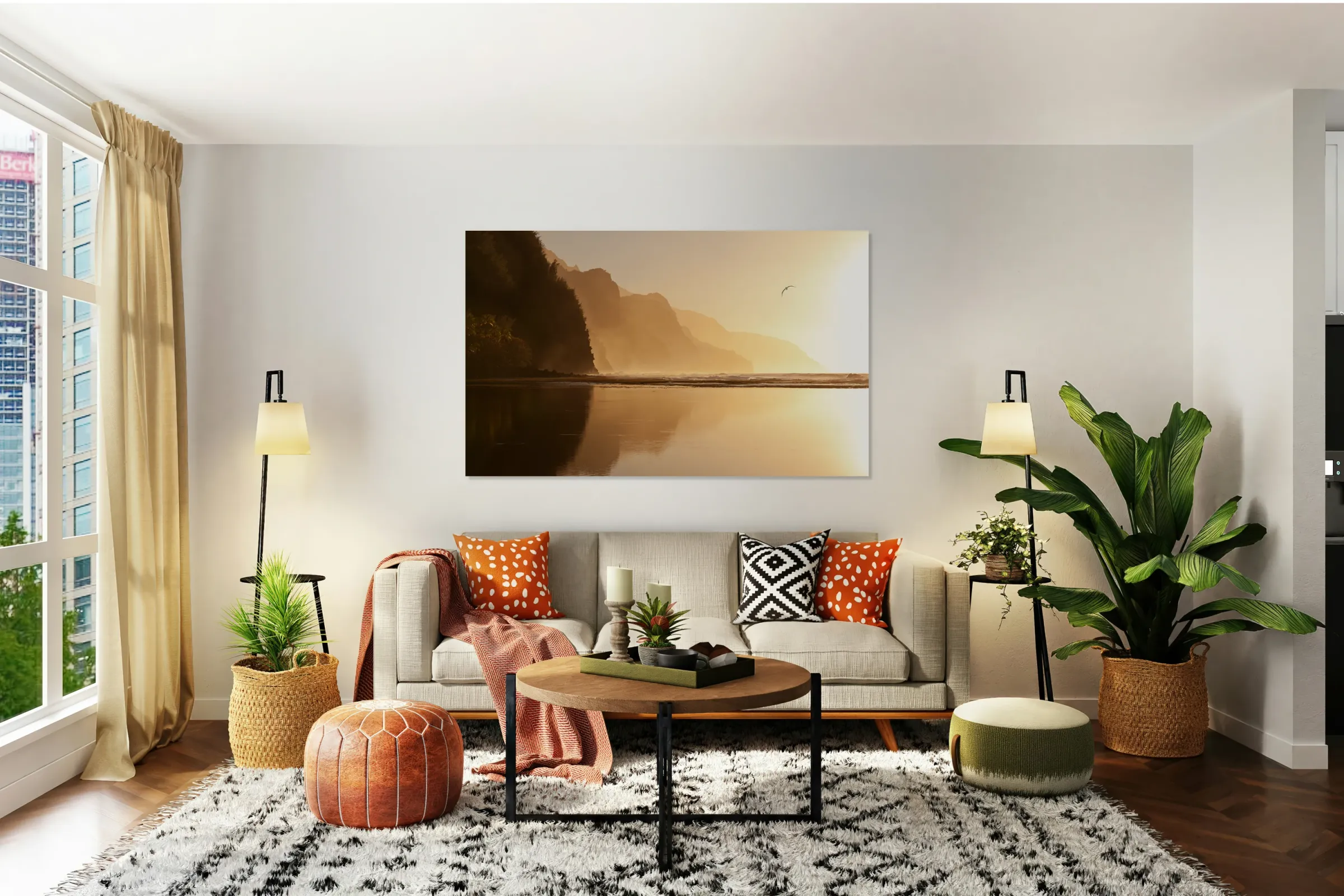 SUR CETTE OEUVRE: MISTY SUNSET ON NA PALI COASTLINE
