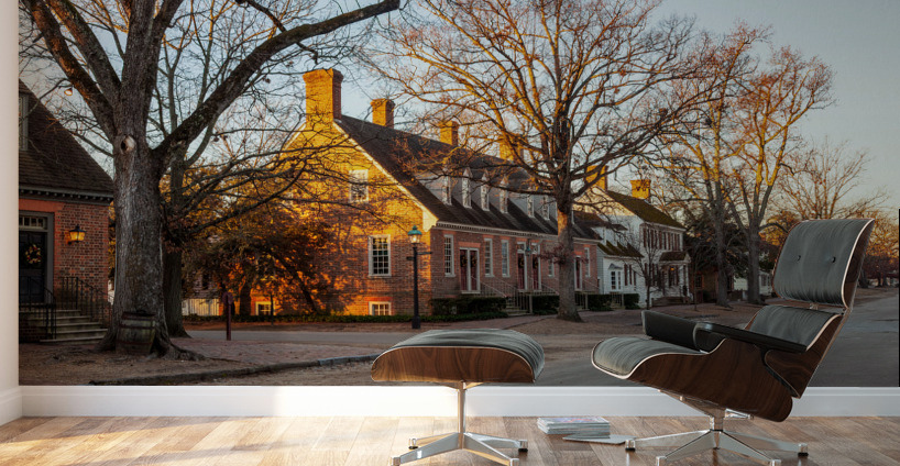 WILLIAMSBURG VIRGINIA - DECEMBER 30: Colonial Williamsburg is decorated for the holiday season on December 30 2011. The sun rises over traditional homes.
