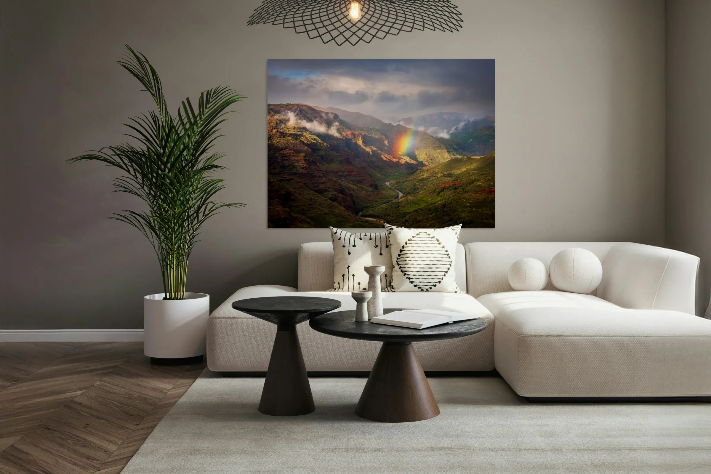 Dramatic rainbow over Waimea Canyon Impression sur toile