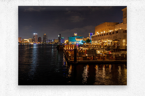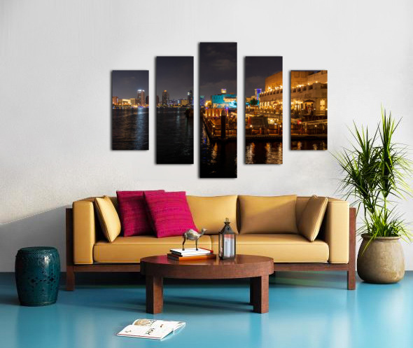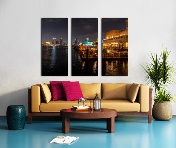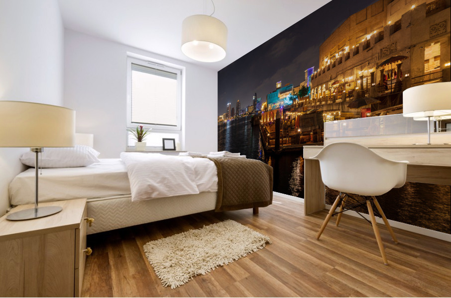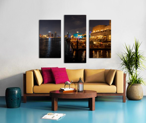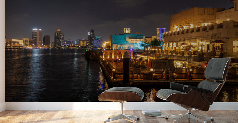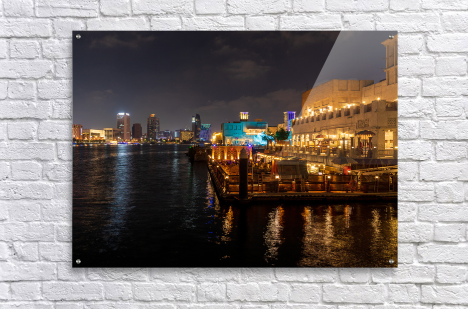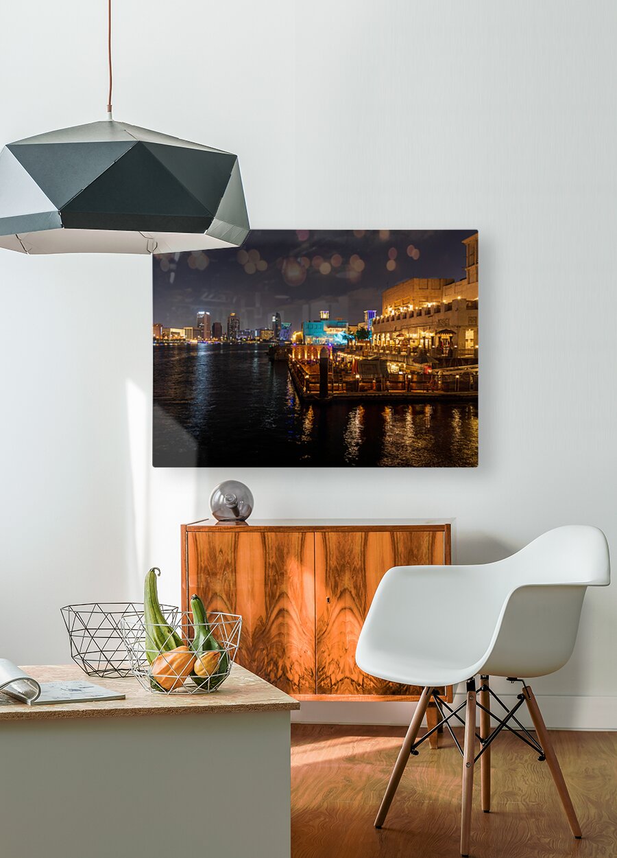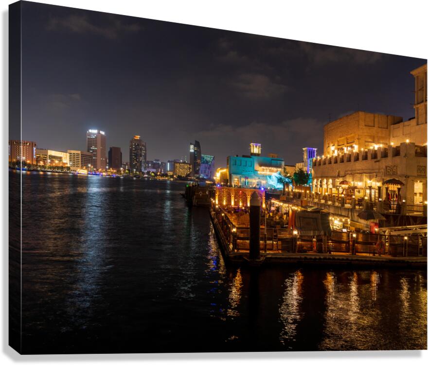 SUR CETTE OEUVRE: THE CREEK BY BUR DUBAI AND AL SEEF AT NIGHT WITH WATERFRONT REST