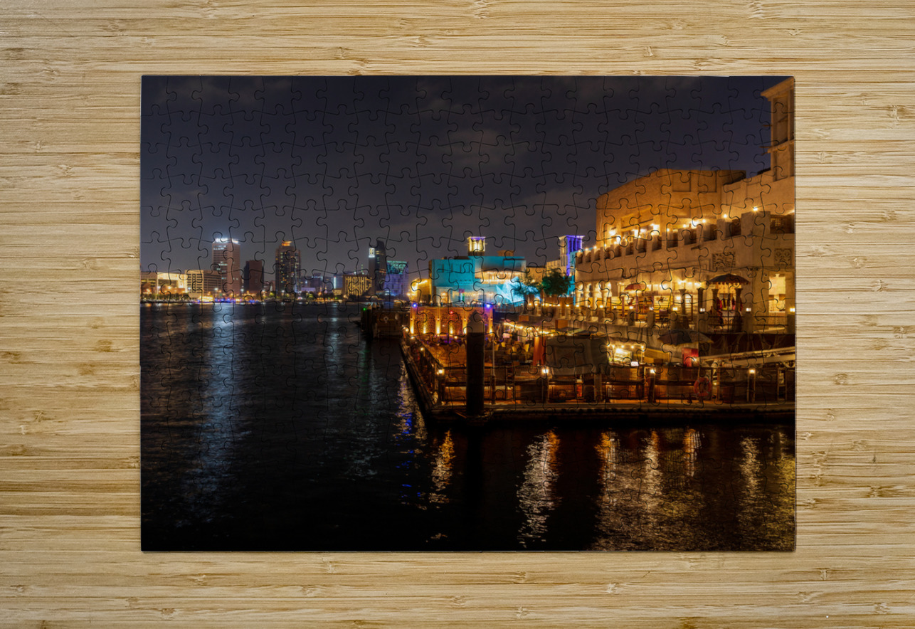 The Creek by Bur Dubai and Al Seef at night with waterfront rest Steve Heap Puzzle