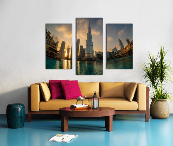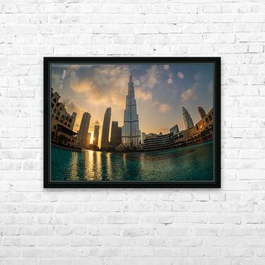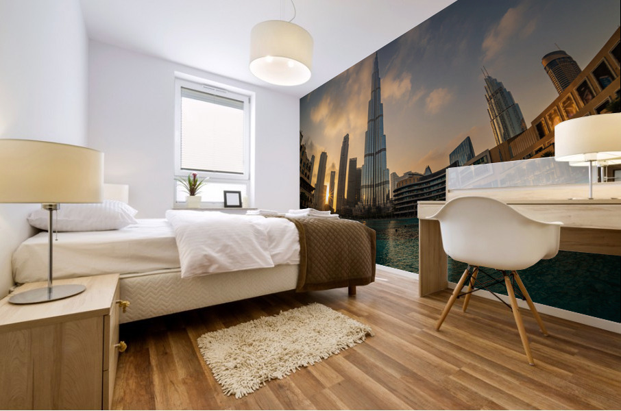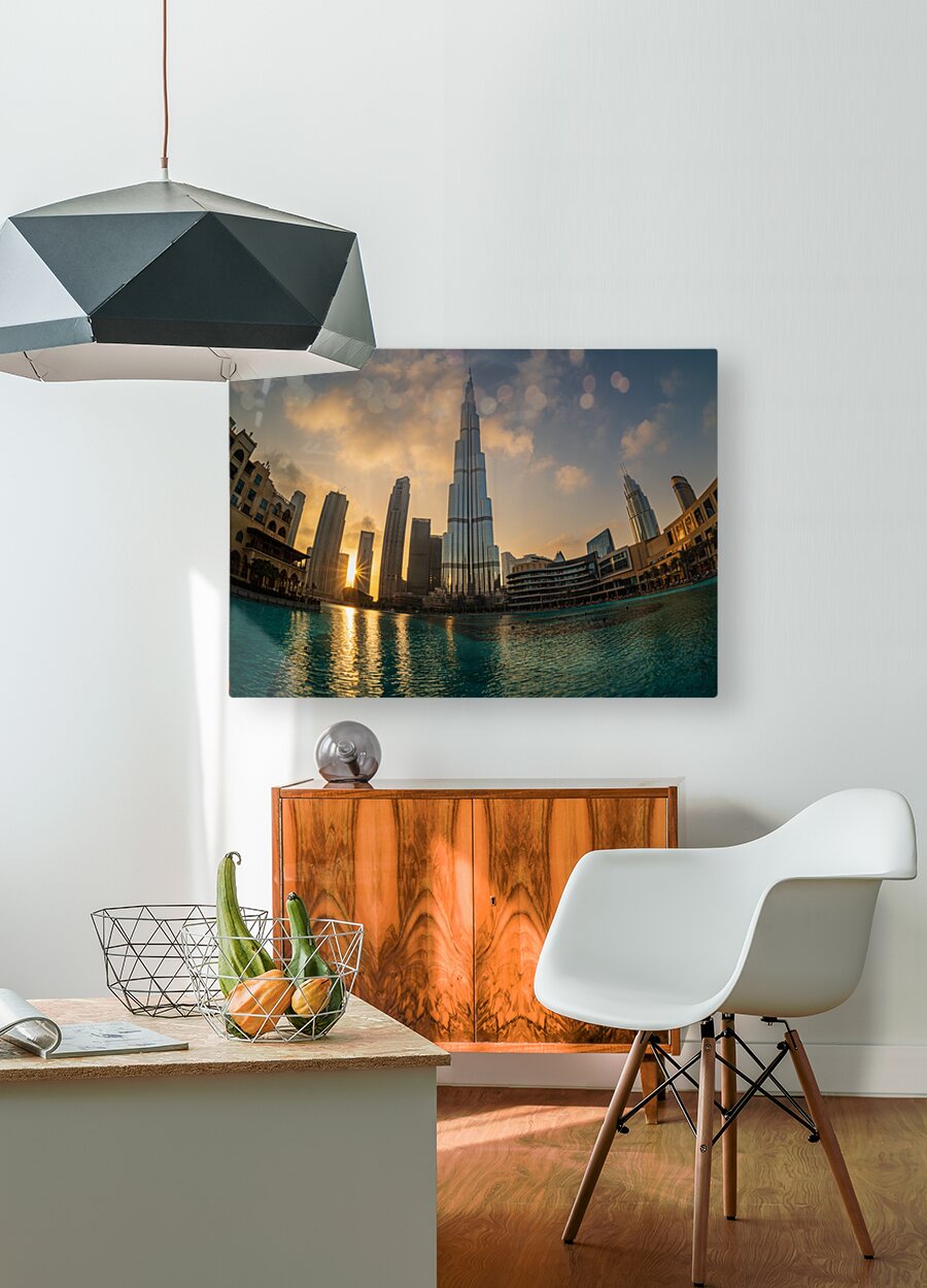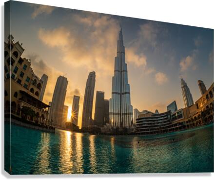 SUR CETTE OEUVRE: SUNSET OVER THE BURJ AL KHALIFA IN DUBAI DOWNTOWN DISTRICT