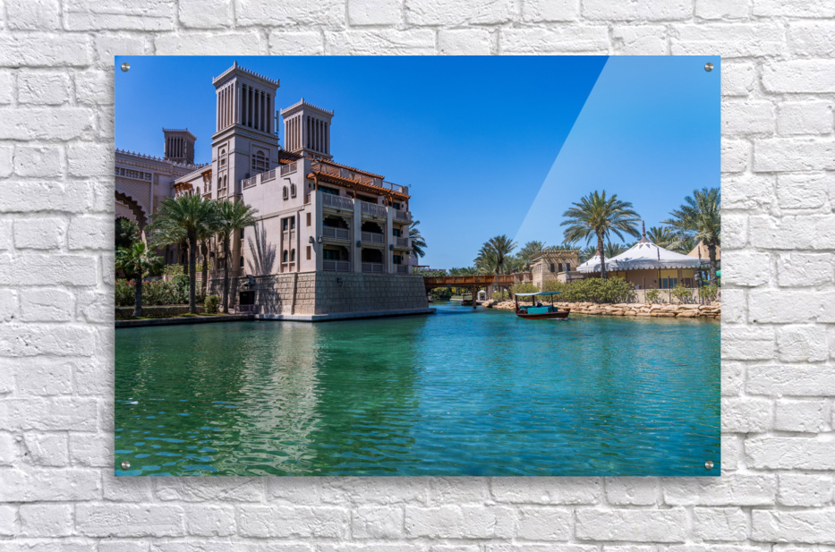 Wooden bridge over waterway in Souk Madinat Junction mall Impression sur toile