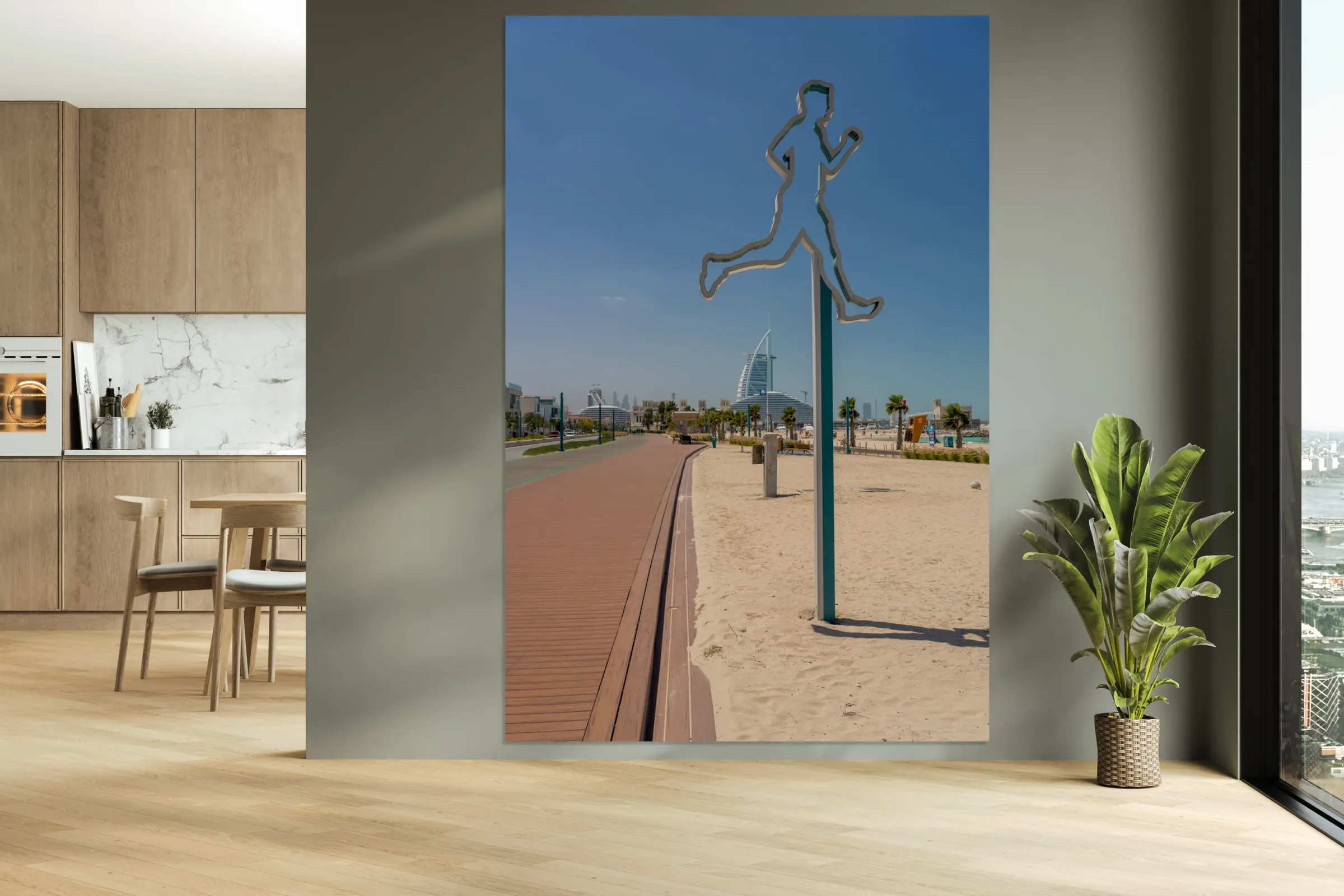 Pour obtenir "Rubber surface of running track alongside Dubai beach" dans une impression encadrée.