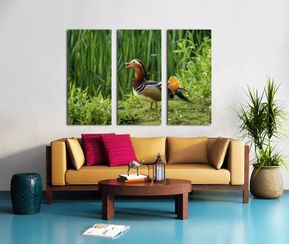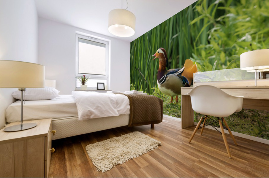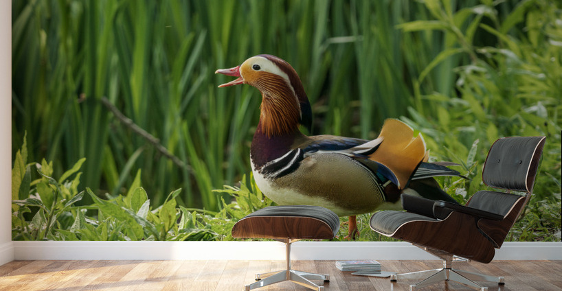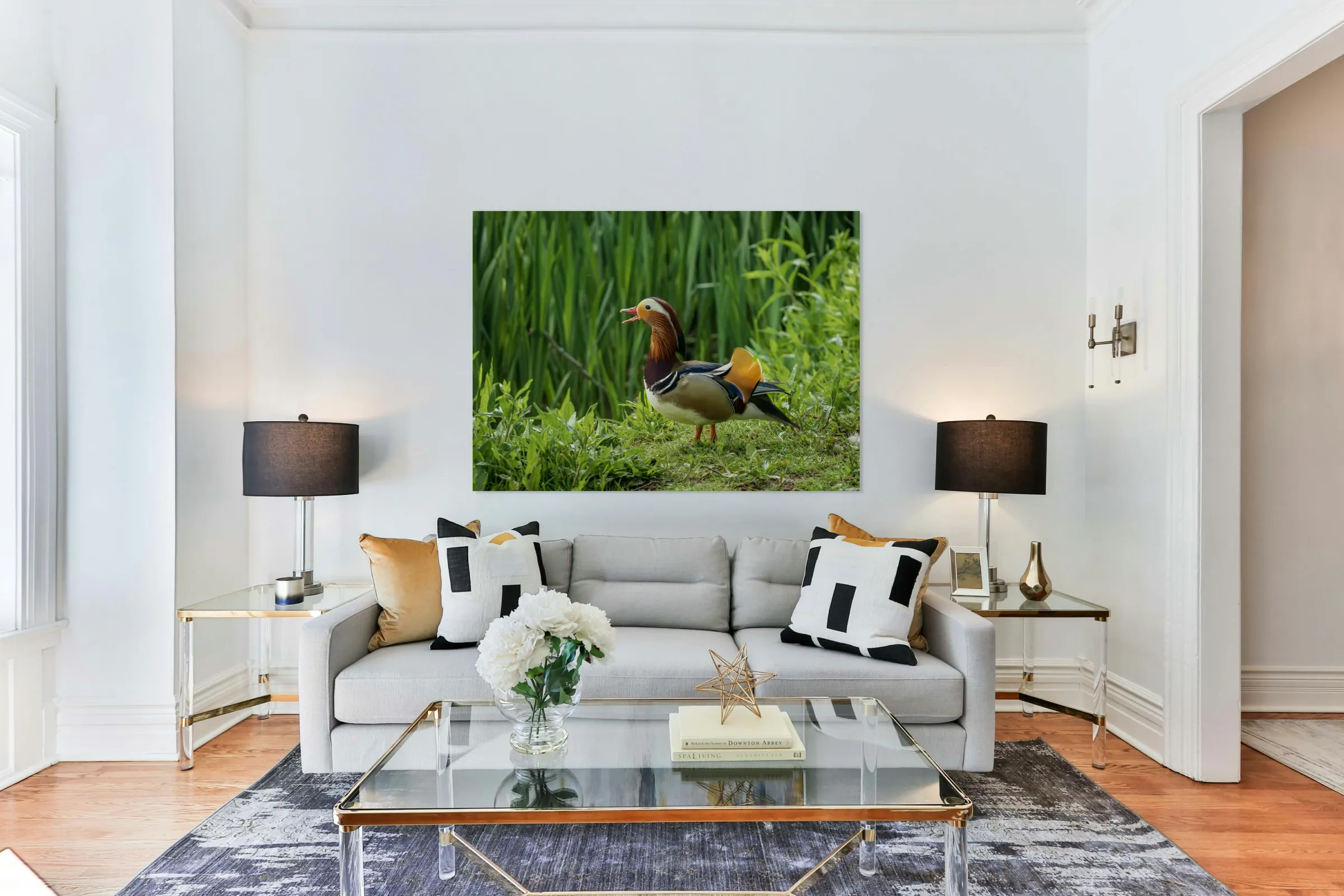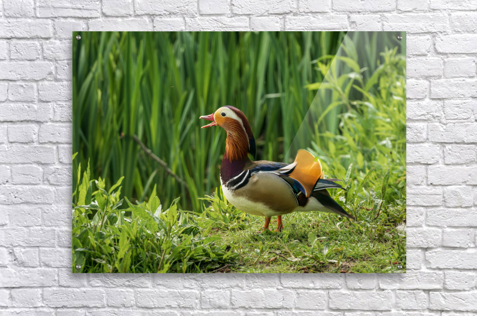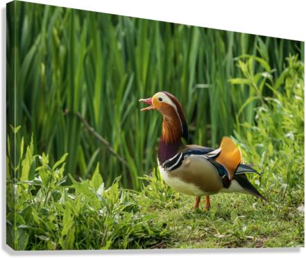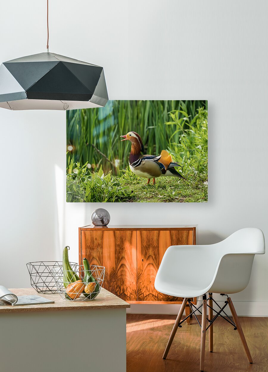 SUR CETTE OEUVRE: MANDARIN DUCK ON THE LAKESHORE AT THE MERE IN ELLESMERE