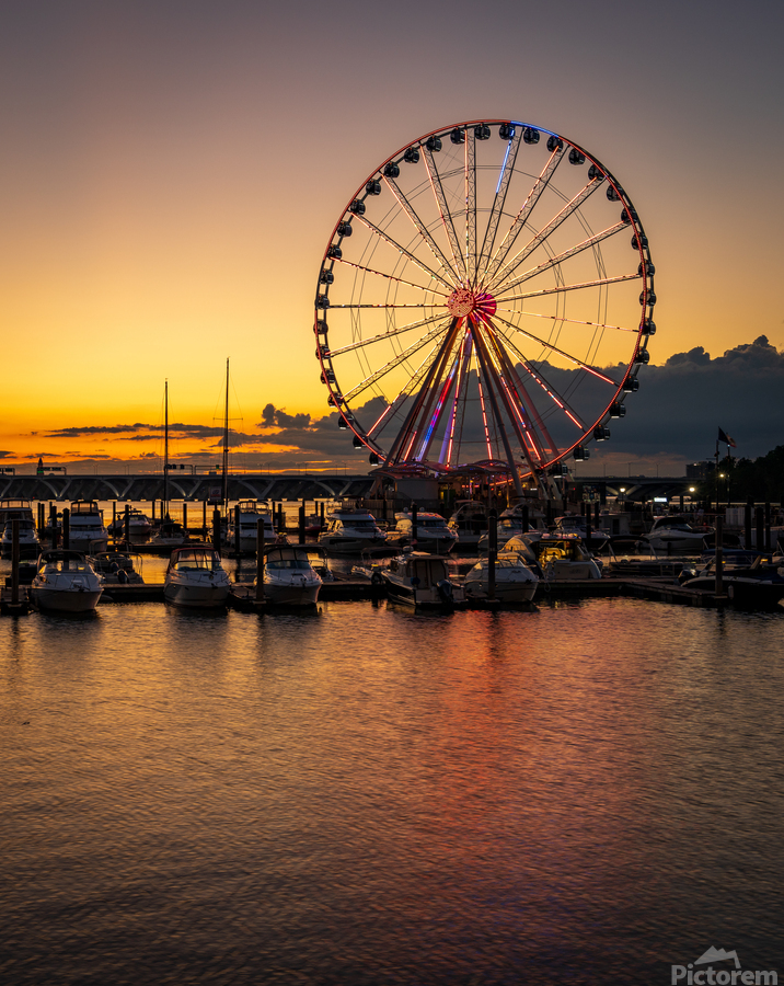 SUR CETTE OEUVRE: FERRIS WHEEL AT NATIONAL HARBOR AT SUNSET