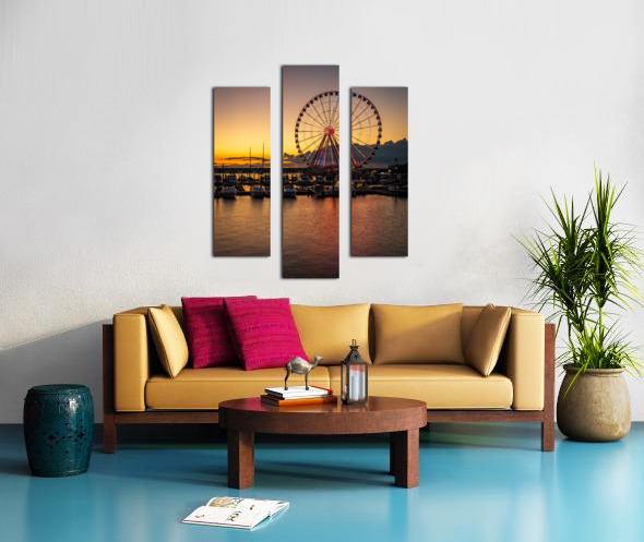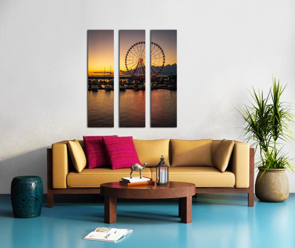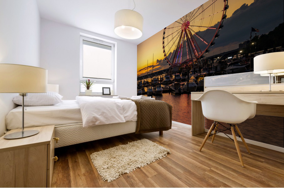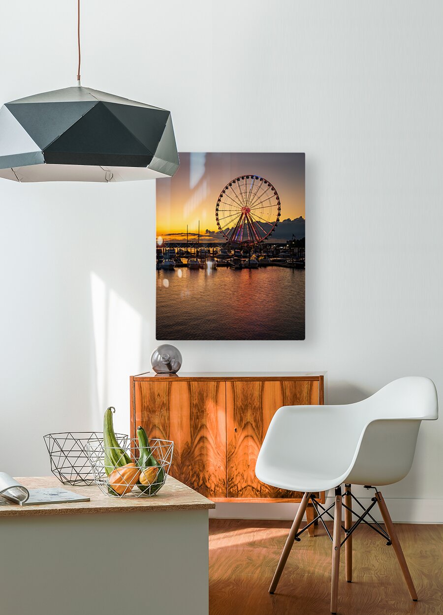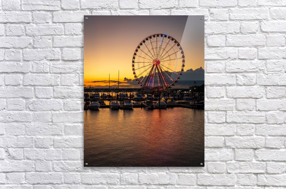 Ferris wheel at National Harbor at sunset Impression sur bois