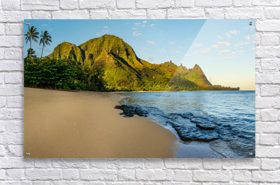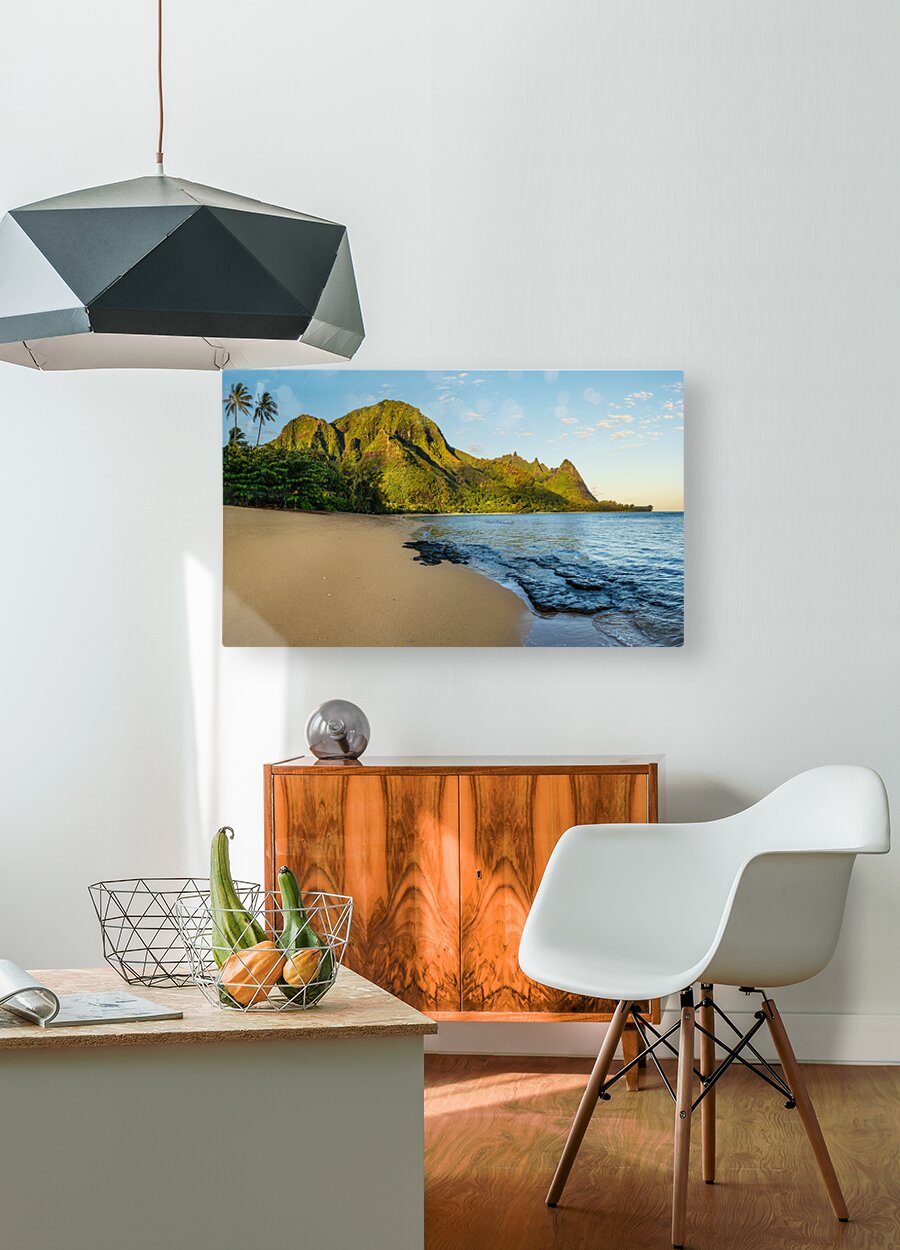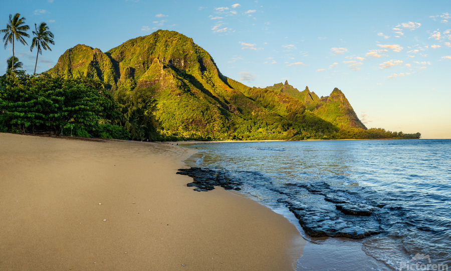 SUR CETTE OEUVRE: EARLY MORNING SUNRISE OVER TUNNELS BEACH ON KAUAI IN HAWAII