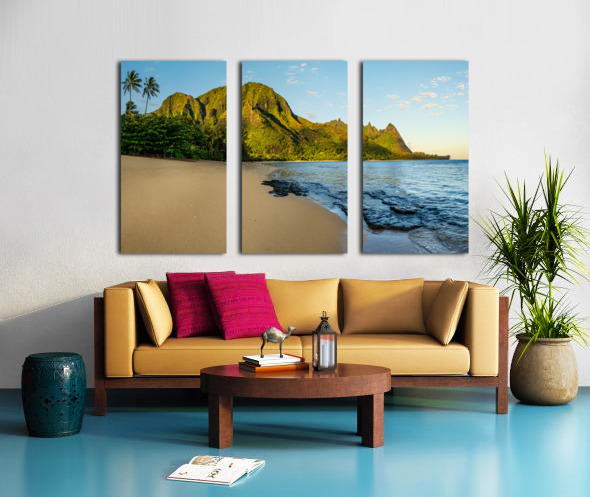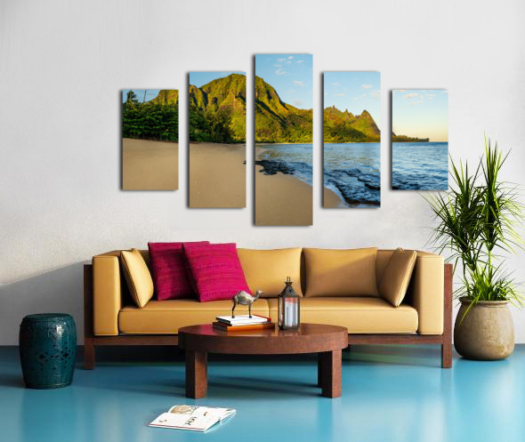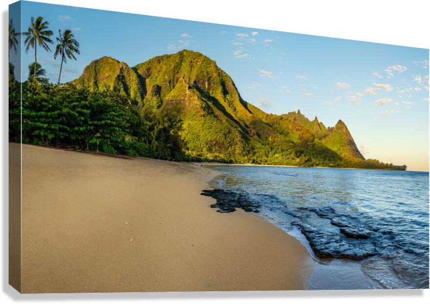 Early morning sunrise over Tunnels Beach on Kauai in Hawaii Impression sur toile