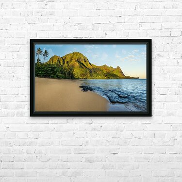 Pour obtenir "Early morning sunrise over Tunnels Beach on Kauai in Hawaii" dans une impression encadrée.