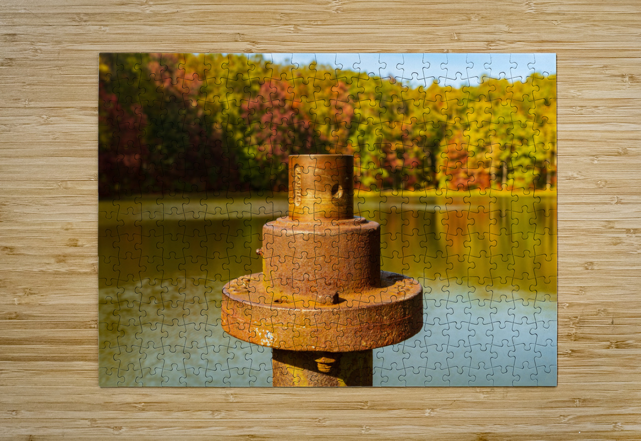 Detail of rusty metal pipe with fall leaves in Coopers Rock in W Steve Heap Impression de puzzle