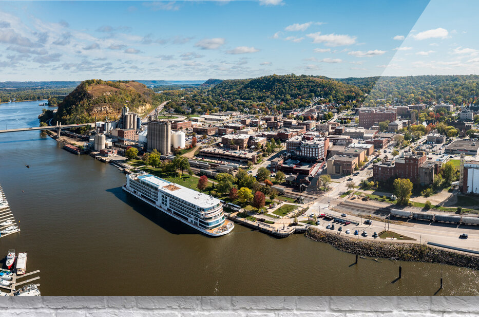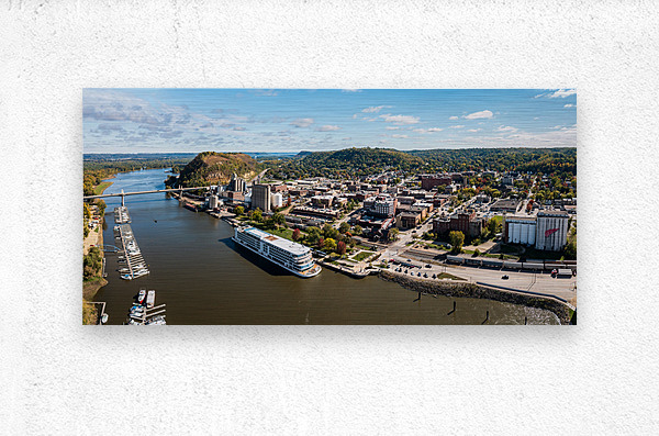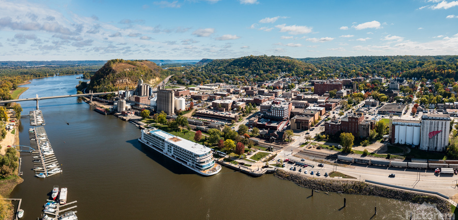 Aerial view of Red Wing Minnesota with river cruise boat Cadre photo