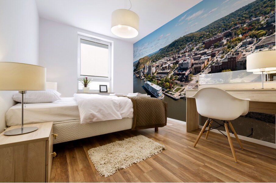 SUR CETTE OEUVRE: AERIAL VIEW OF RED WING MINNESOTA WITH RIVER CRUISE BOAT