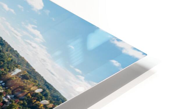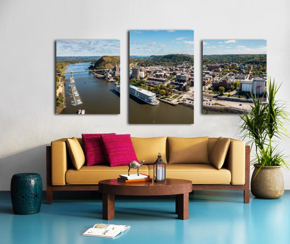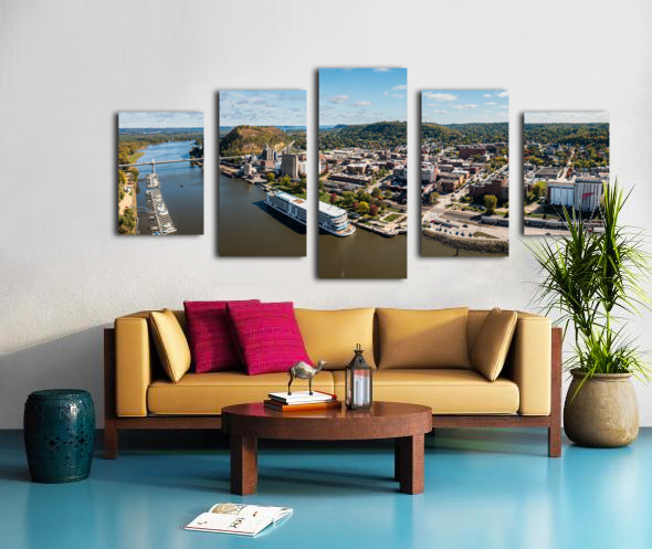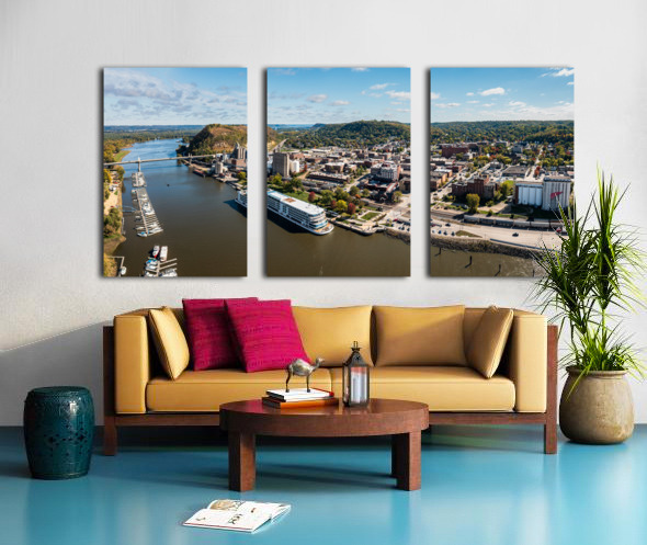 Aerial view of Red Wing Minnesota with river cruise boat Impression sur bois