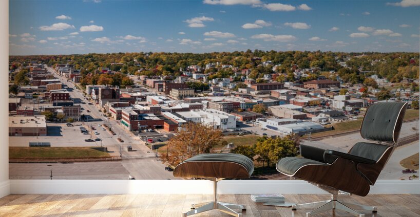 Aerial view of the city of Hannibal in Missouri from over the Mississippi river