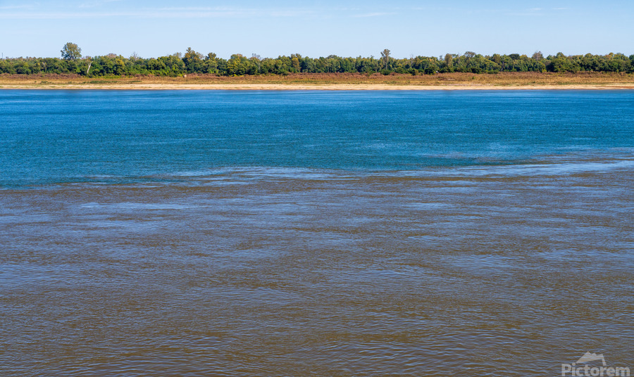 SUR CETTE OEUVRE: BLUE CLEAR WATER FROM OHIO RIVER MEETS BROWN MUDDY MISSISSIPPI