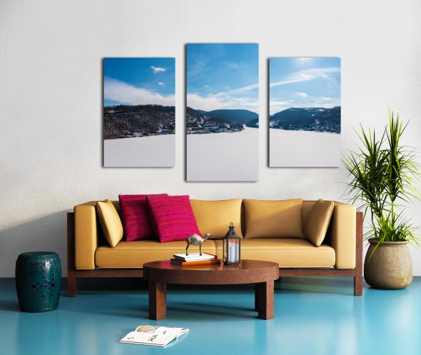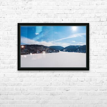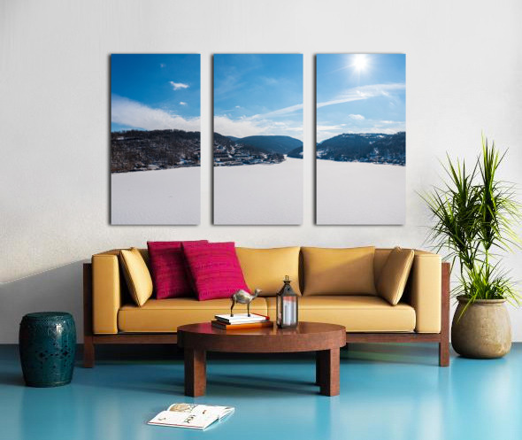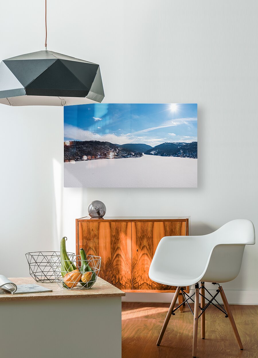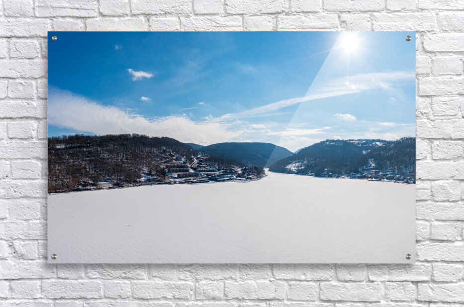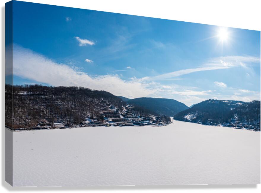 SUR CETTE OEUVRE: AERIAL PANORAMA OF THE FROZEN CHEAT LAKE MORGANTOWN WV LOOKING