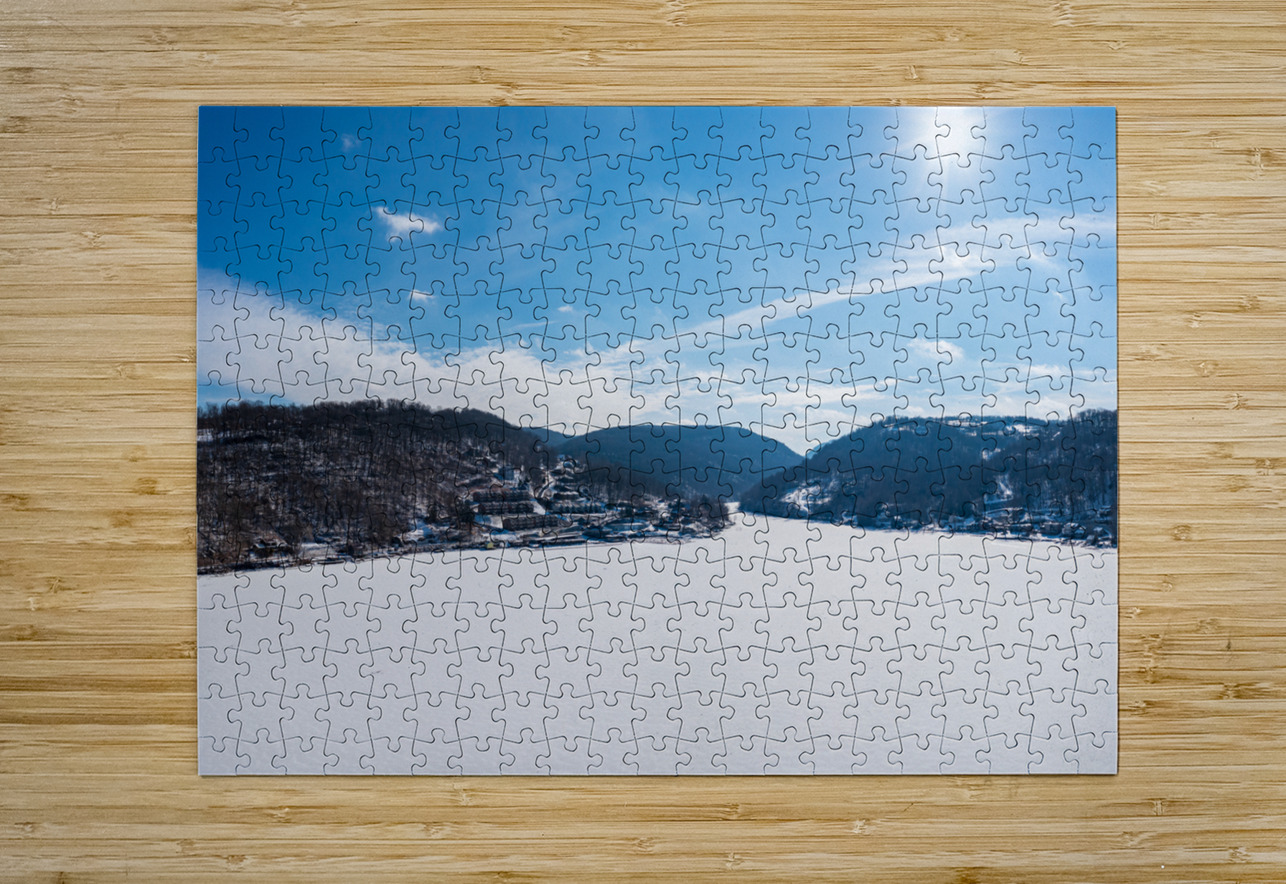 Aerial panorama of the frozen Cheat Lake Morgantown WV looking  Steve Heap Impression de puzzle