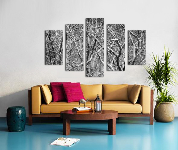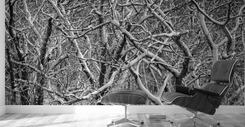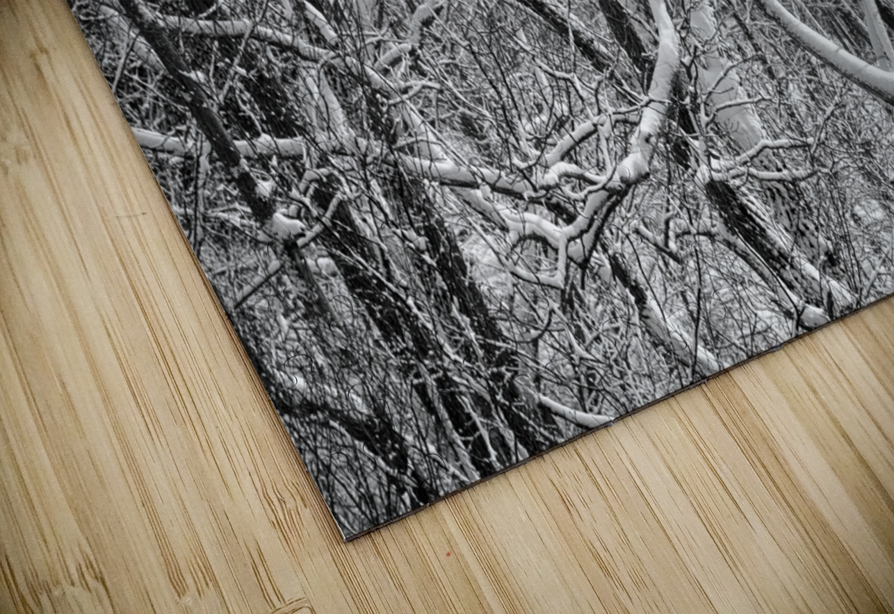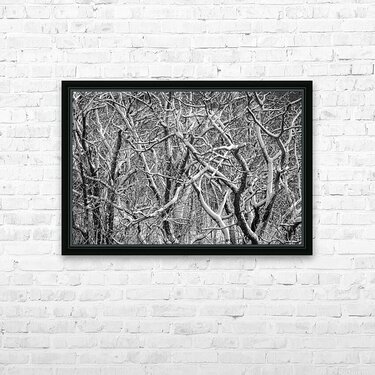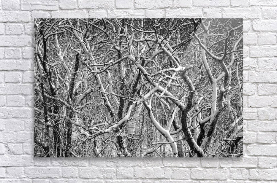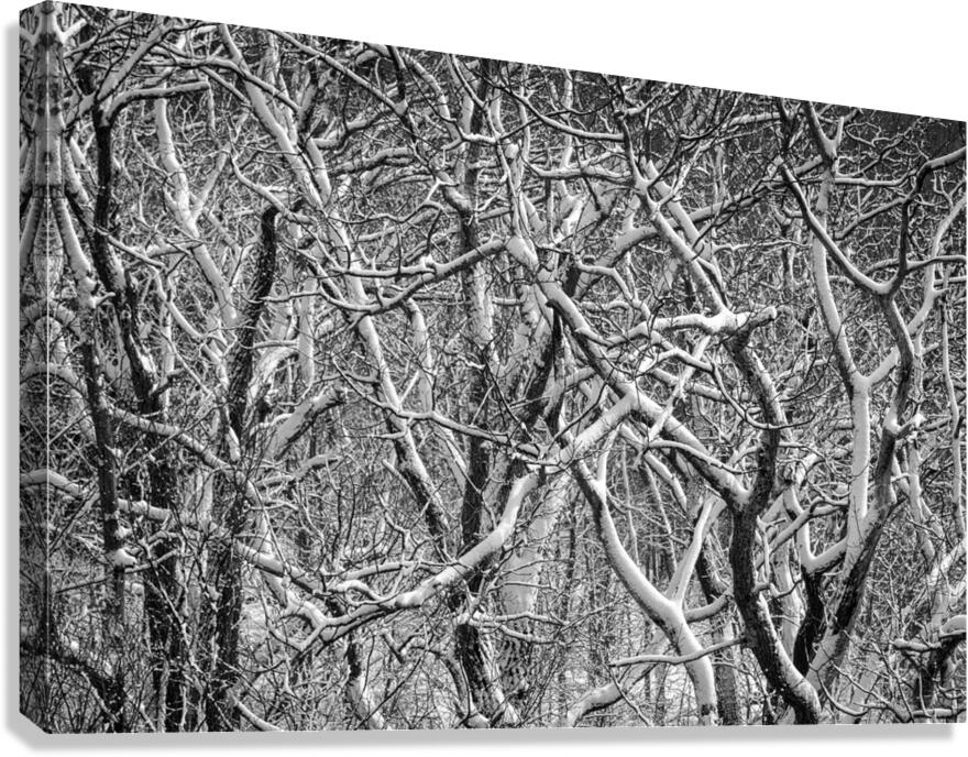 SUR CETTE OEUVRE: TWISTED INTERTWINED SNOW COVERED TREE TRUNKS AT COOPERS ROCK