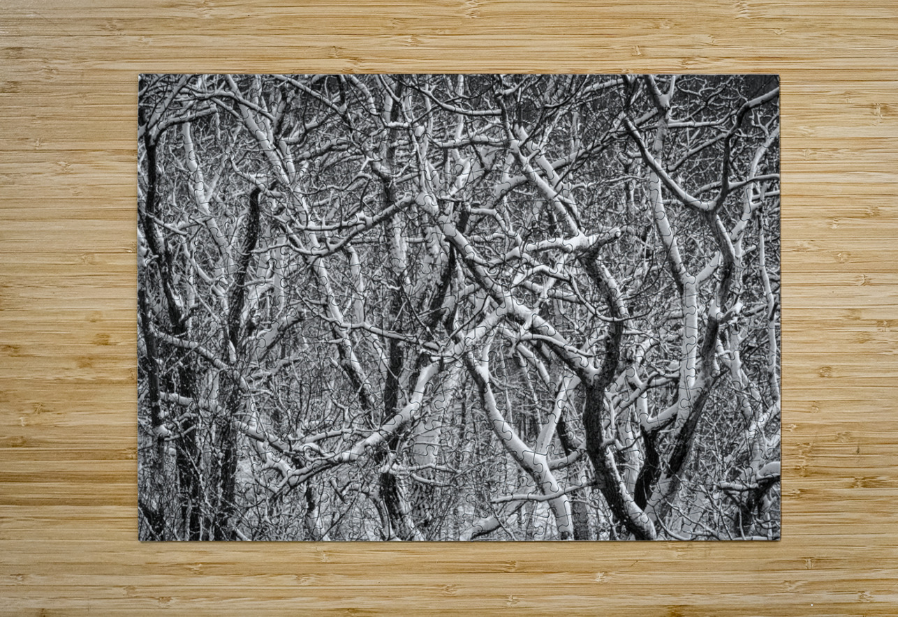 Twisted intertwined snow covered tree trunks at Coopers Rock Steve Heap Impression de puzzle