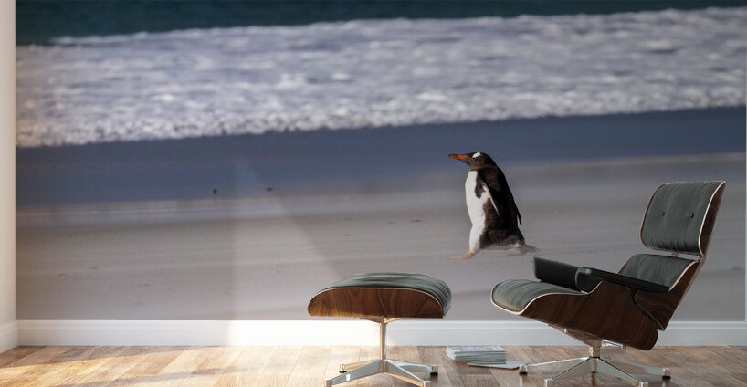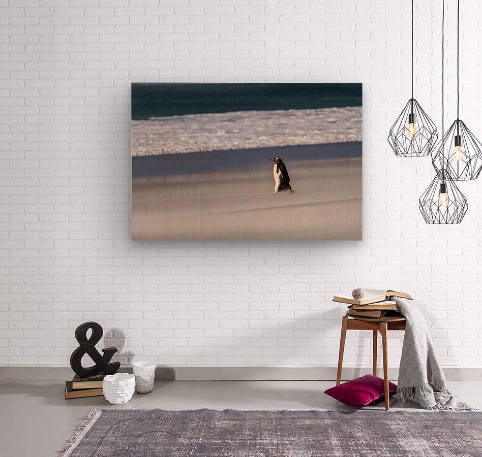 ABOUT THIS ARTWORK: SINGLE GENTOO PENGUIN ON FALKLANDS WALKING TO OCEAN