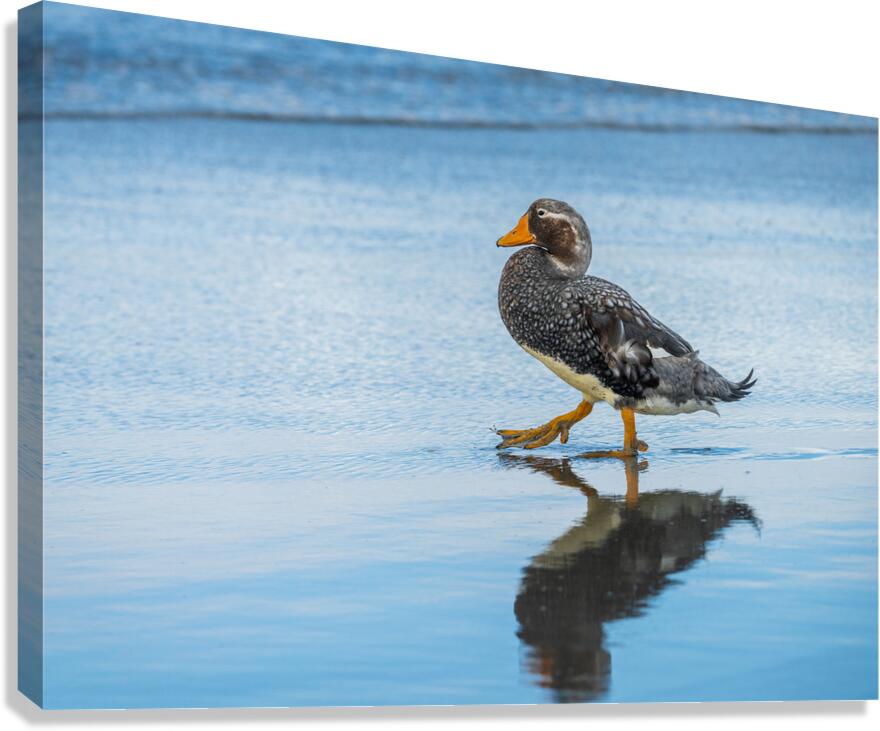 Falkland Steamer duck walking in the surf on Falklands Islands Canvas print