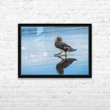 Falkland Steamer duck walking in the surf on Falklands Islands Picture Frame Printing