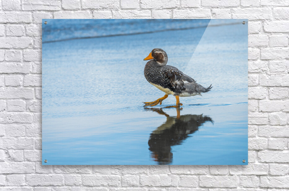 Get this artwork "Falkland Steamer duck walking in the surf on Falklands Islands" in a framed print.