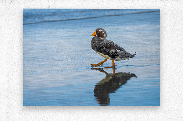 ABOUT THIS ARTWORK: FALKLAND STEAMER DUCK WALKING IN THE SURF ON FALKLANDS ISLANDS