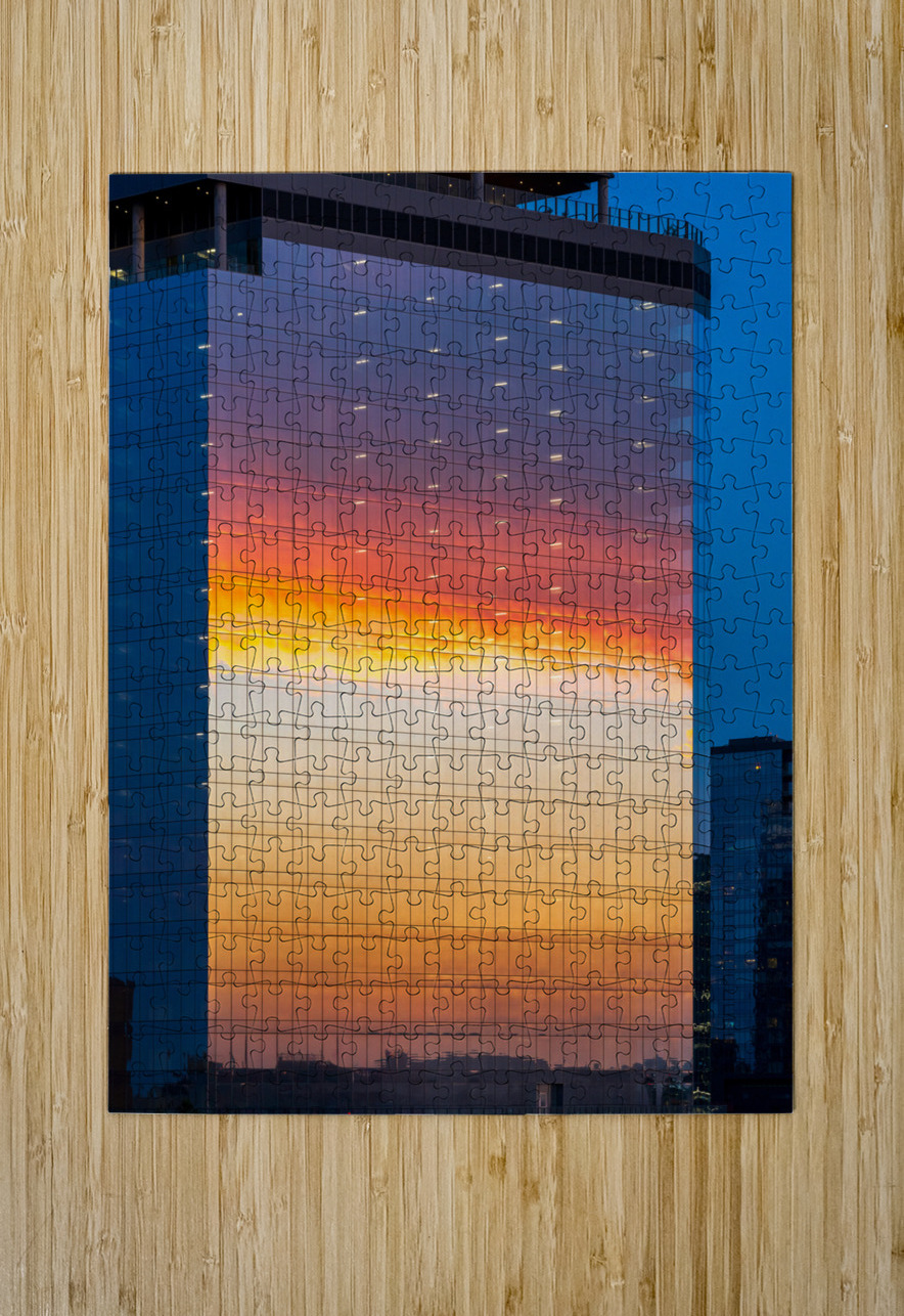 Brilliant sunset reflected in the glass of new office building Steve Heap Puzzle printing