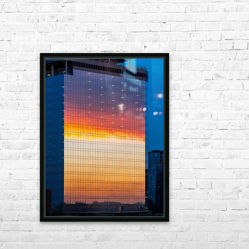 Brilliant sunset reflected in the glass of new office building Picture Frame Printing