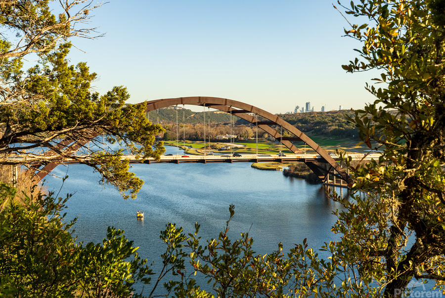 Get this artwork "Colorado river and Pennybacker bridge from overlook in Austin Te" in a framed print.