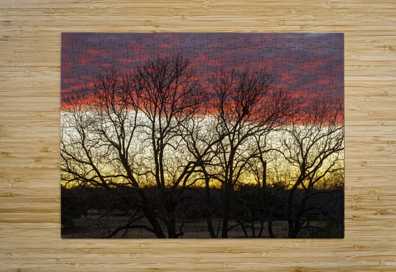 Dramatic sunset over Legacy Hills Park lake with details of tree Steve Heap Puzzle printing
