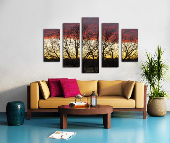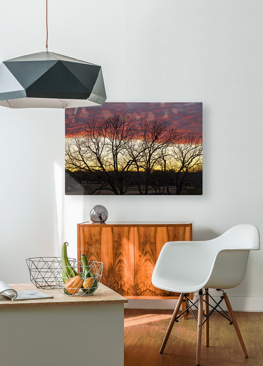 Get this artwork "Dramatic sunset over Legacy Hills Park lake with details of tree" in a framed print.