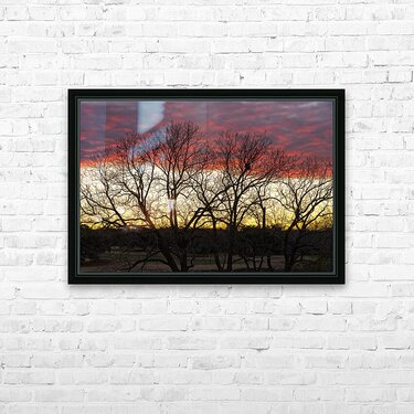 Dramatic sunset over Legacy Hills Park lake with details of tree Picture Frame Printing