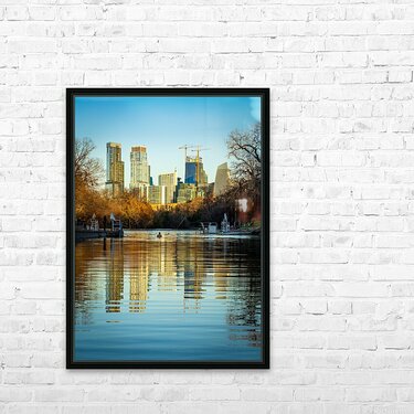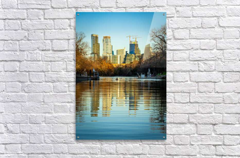 Get this artwork "Cityscape of downtown Austin from Barton Springs Pool on New Yea" in a framed print.