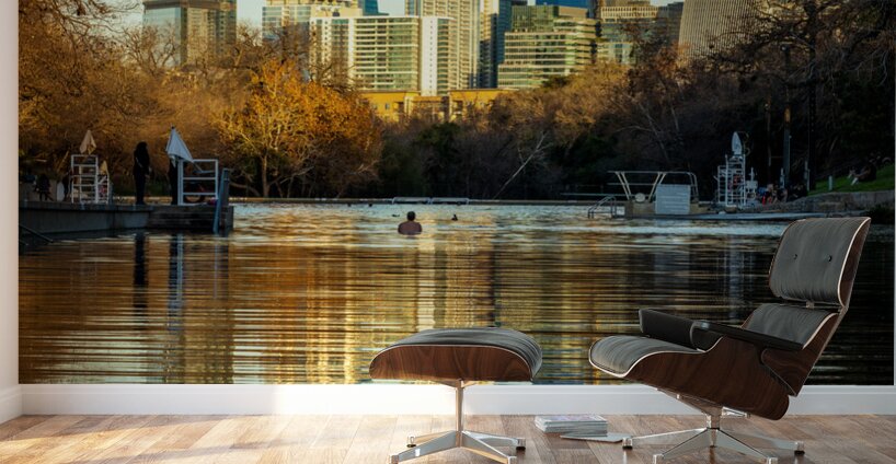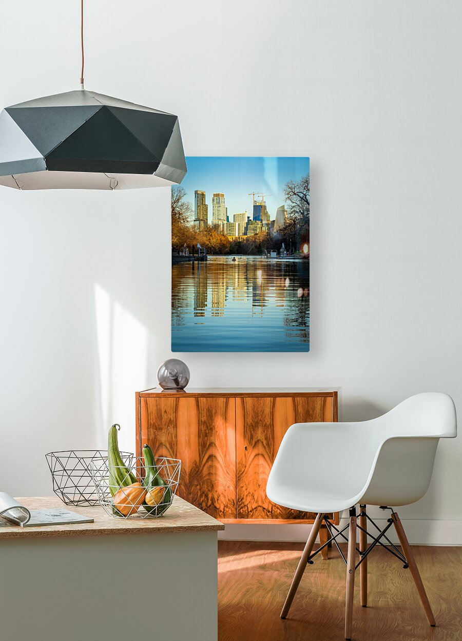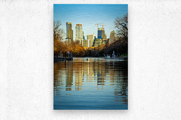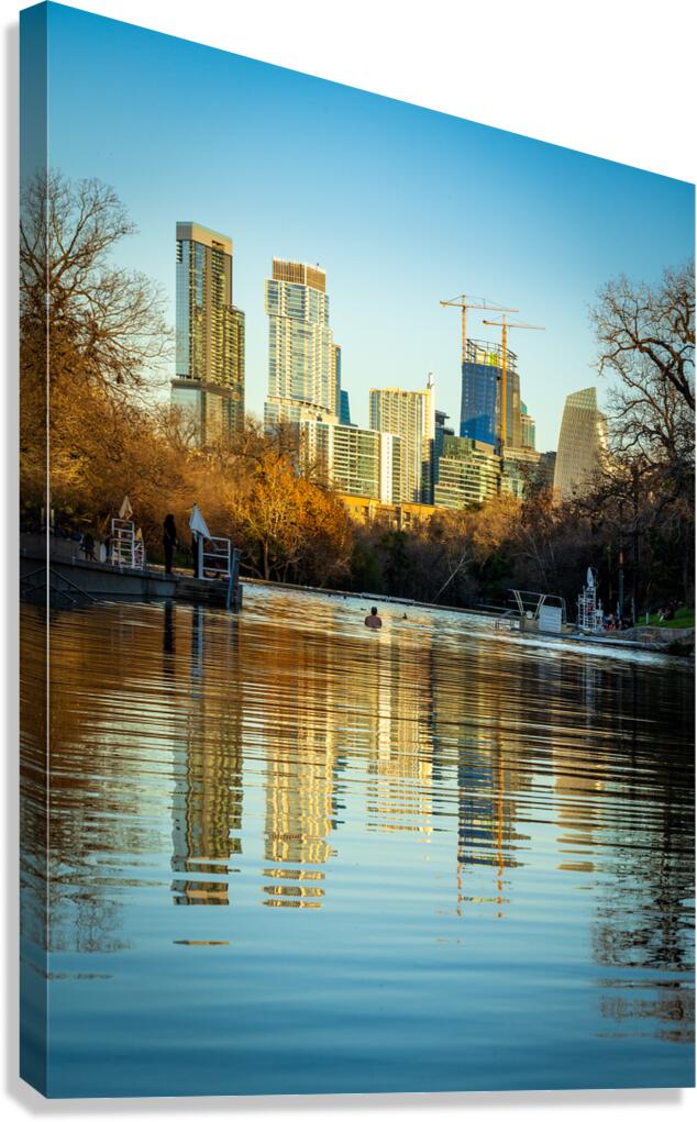 ABOUT THIS ARTWORK: CITYSCAPE OF DOWNTOWN AUSTIN FROM BARTON SPRINGS POOL ON NEW YEA
