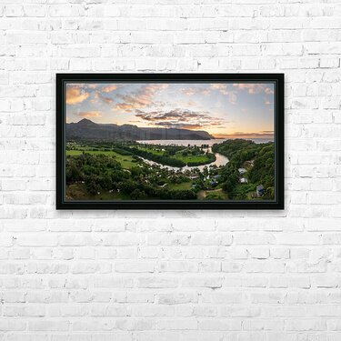 Get this artwork "Panoramic aerial view of sunset over Hanalei Bay" in a framed print.