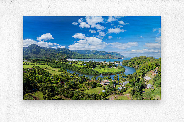Get this artwork "Panoramic aerial view of Hanalei Bay verdant landscape " in a framed print.