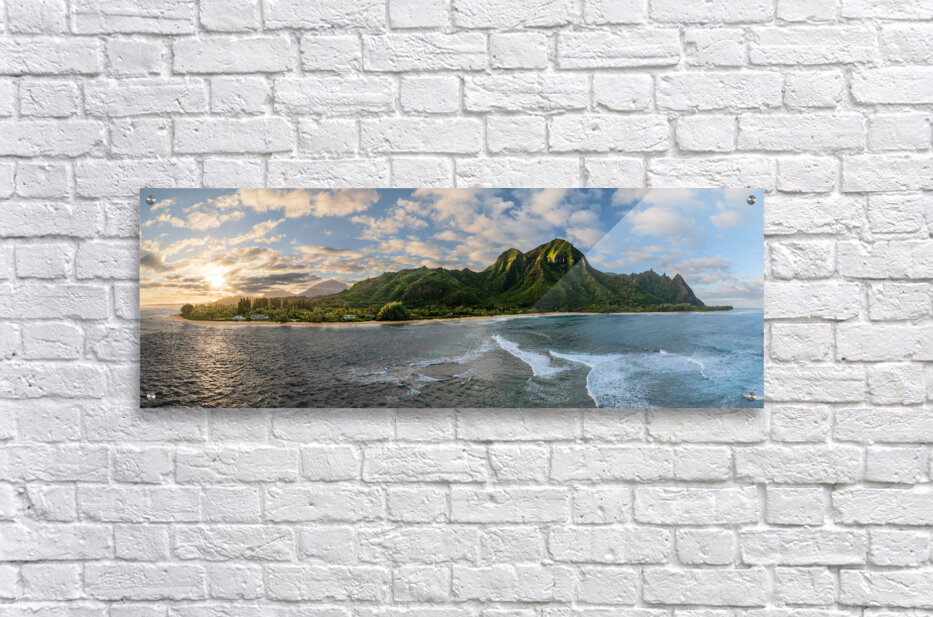 ABOUT THIS ARTWORK: PANORAMA OF TUNNELS BEACH AT SUNSET IN KAUAI HAWAII WITH ST