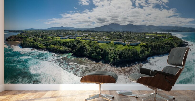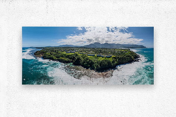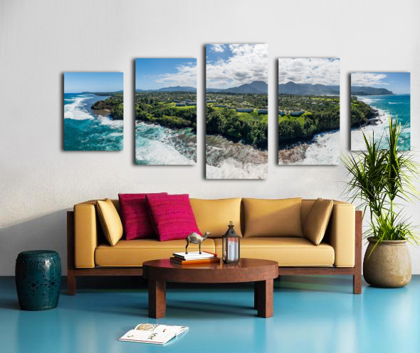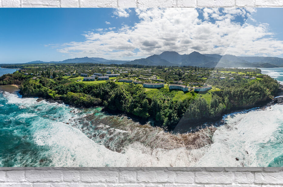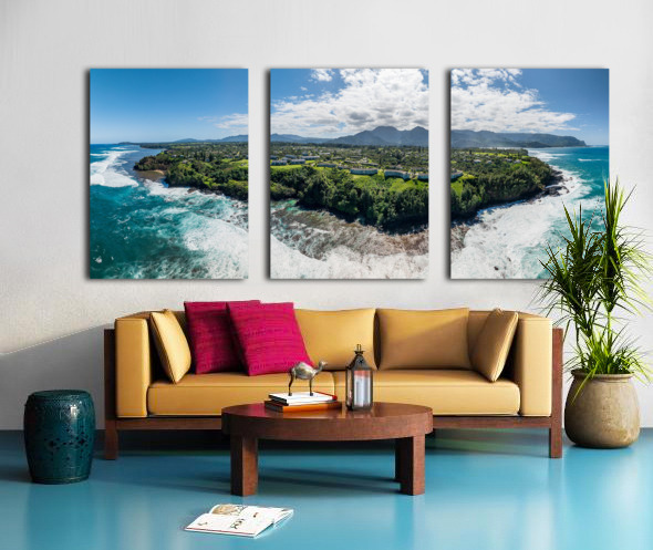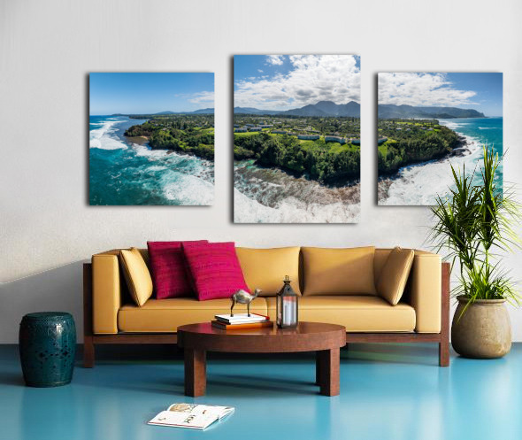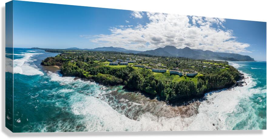 Get this artwork "Aerial view of Princeville to Na Pali coast off Sealodge beach" in a framed print.