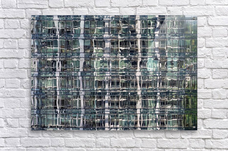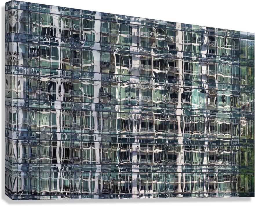 ABOUT THIS ARTWORK: REFLECTIONS OF CONDOMINIUM TOWER IN WINDOWS OF APARTMENT BUILDIN